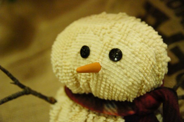 I was finally able to make a snowman using an old chenille bedspread that I bought at an estate sale last summer. I didn't have a pattern, so I just cut one large circle and one smaller one. Sewed and stuffed and he was done!